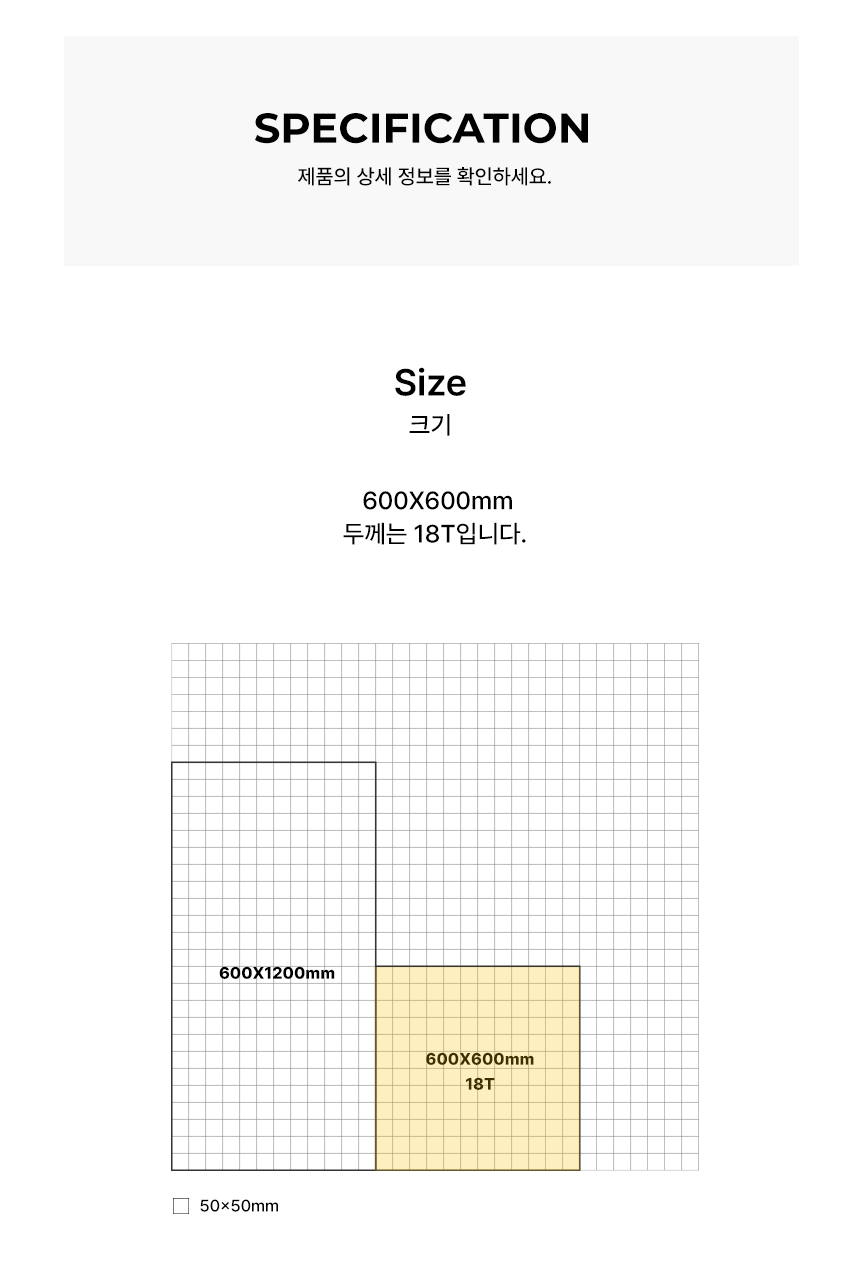 크기 600 × 600 × 18 mm
